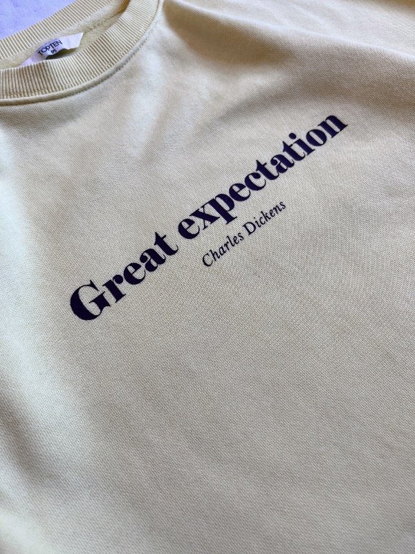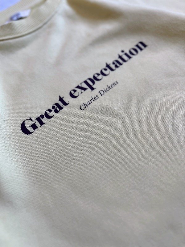 • estampa marrón, chiquita en el frente "GREAT EXPECTATION CHARLES DICKENS",