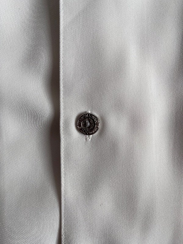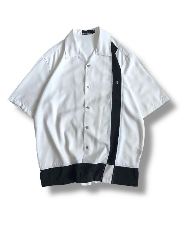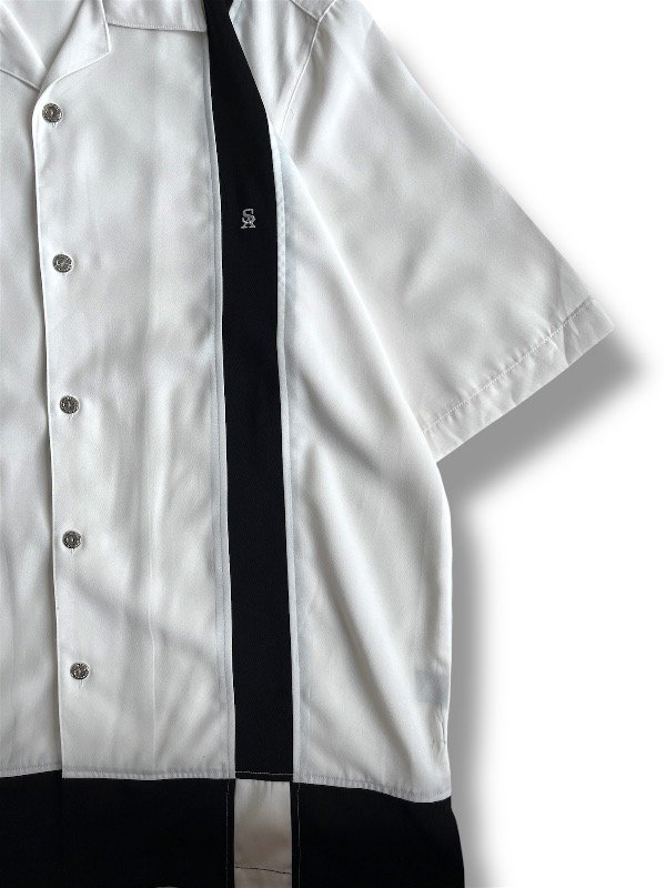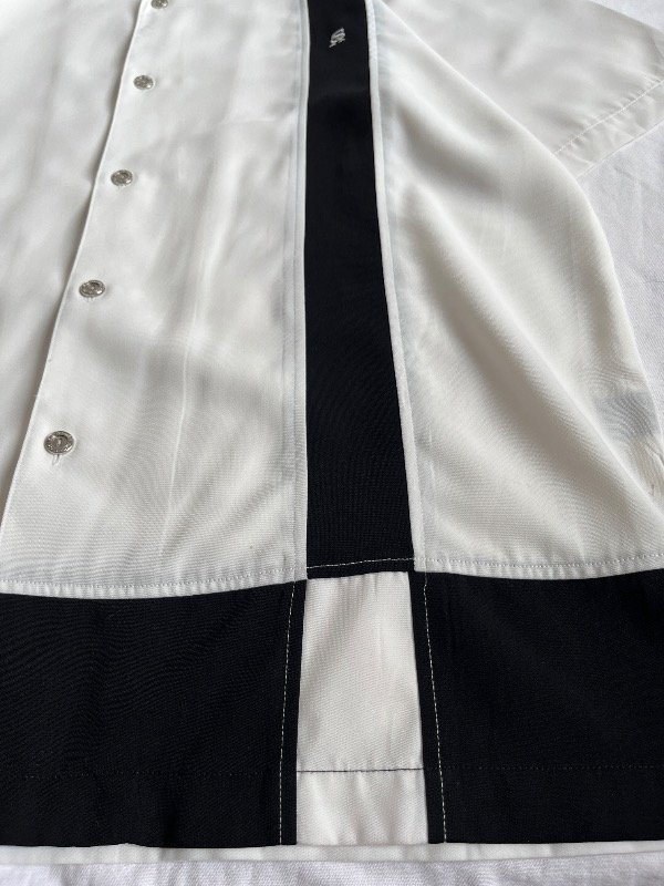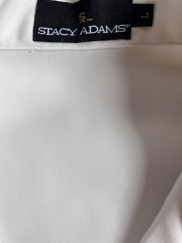 • CAMISA STACY ADAMS - mangas cortas, blanca con franjita negra, talle L