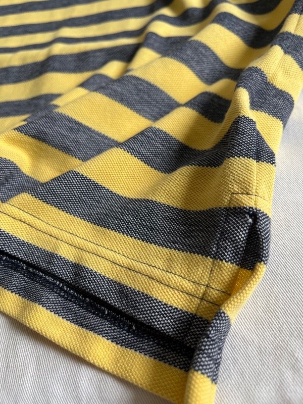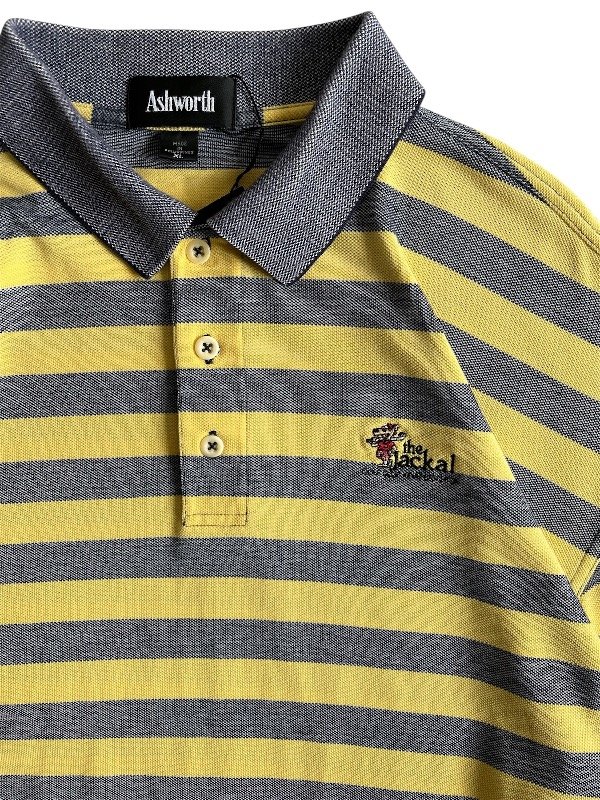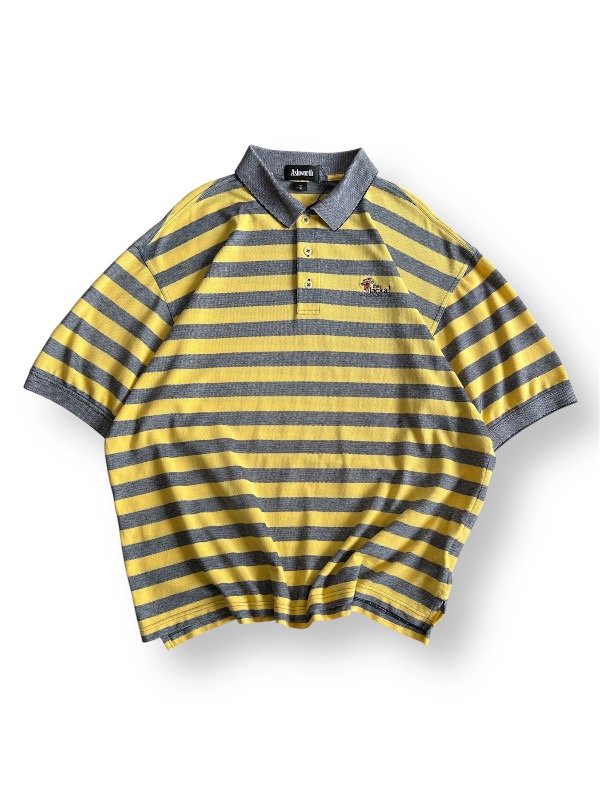 • CHOMBA ASHWORTH - mangas cortas, gris a rayas amarillas horizontales, talle XL