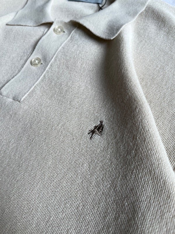 • CHOMBA OLZEN - mangas cortas, beige, hombrecito bordado en el pecho, talle 105
